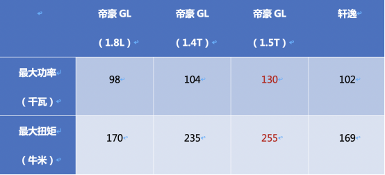 而具体到两个车型的动力参数上,自然也是选择更多的帝豪GL要完胜与轩逸。