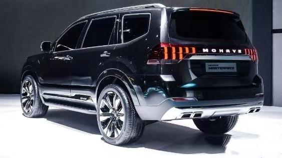 新款霸锐前脸采用起亚家族化“虎啸”设计,熏黑进气格栅饰以镀铬竖条,车身方正造型,点阵式LED前大灯,车身黑色涂装,车侧笔直线条凸显力量感,车尾贯穿式尾灯中部饰以MOHAVE的车名标识,银色下塑料护板,搭配双边四出排气布局彰显大型硬派越野SUV的定位。暂未公布新车车身尺寸,但就现款车型4930/1915/1810mm的长宽高和2895mm的轴距一定不会差!