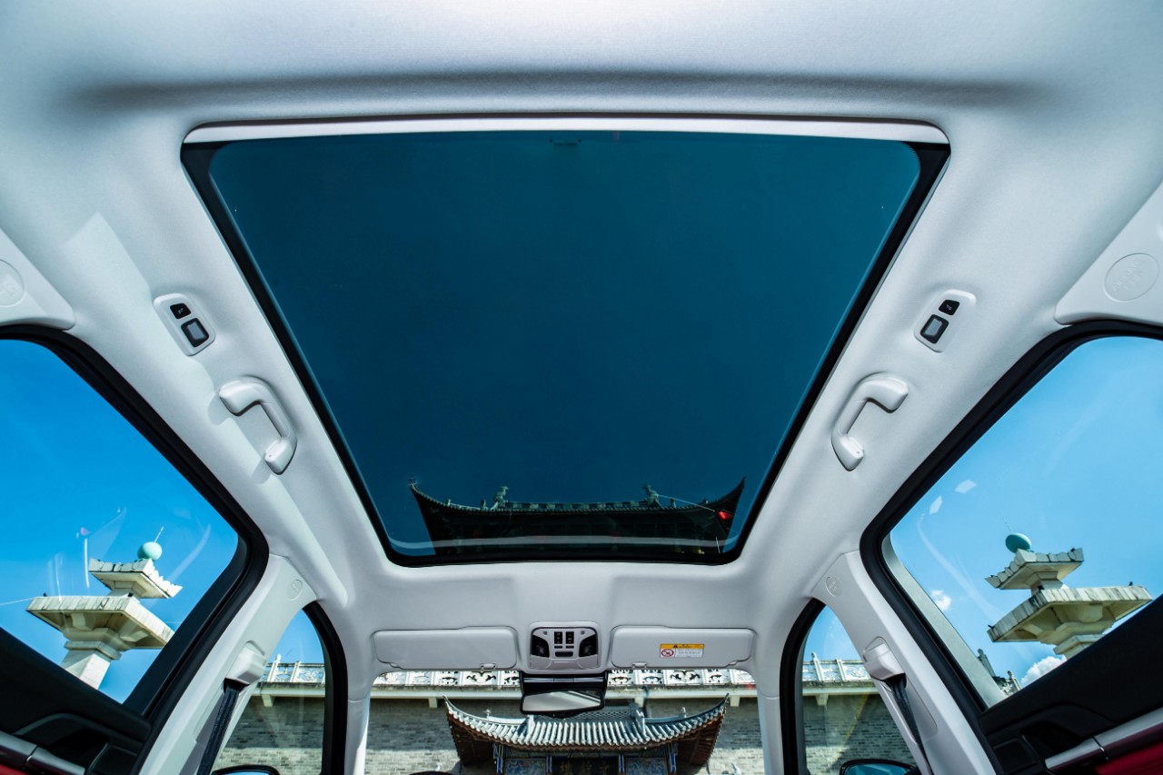 国潮版车型内饰最引人注目的是空调出风口增加红色的装饰条,门板用红色皮质进行包裹,新车的内饰活跃了几分。