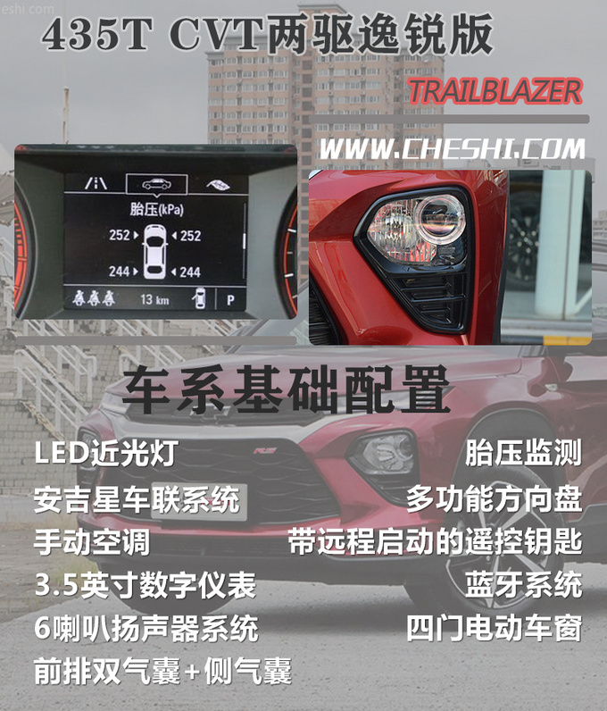 雪佛兰创界全新均搭载1.3T三缸涡轮增压发动机,这也是目前雪佛兰家族最常见的产品之一,最大功率121kW,最大扭矩为240N·m,除了最顶配车型采用9速手自一体变速器外,其余车型均搭载CVT无级变速器。