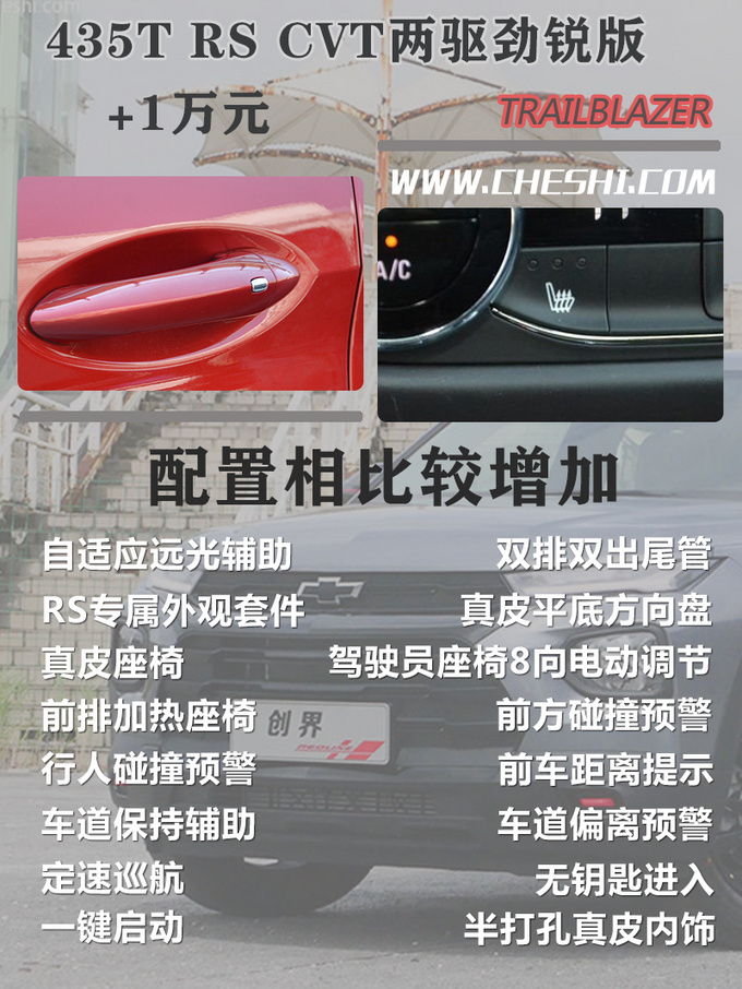 视线来到两款RS版车型,在配置上就丰富了许多,便利性配置更加齐全,像座椅加热、主驾电动调节、定速巡航、一键启动、无钥匙进入等配置都能够带来更大的便利,同时在外观上专属的RS装饰也更加夸张,结合上1万元的价格涨幅,性价比还是挺高的。