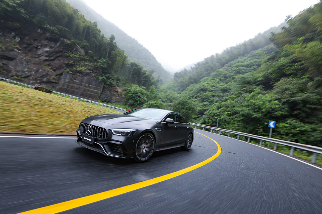当然,无需惧怕高性能的暴戾难以驾驭,AMG GT四门跑车足够专业,也相对友好。4MATIC+的加持让我们足够安心,主动扭矩分配使得车辆更主动地去进入弯心,而主动式后轴转向系统,则让这头猛兽脚步变得异常轻盈。