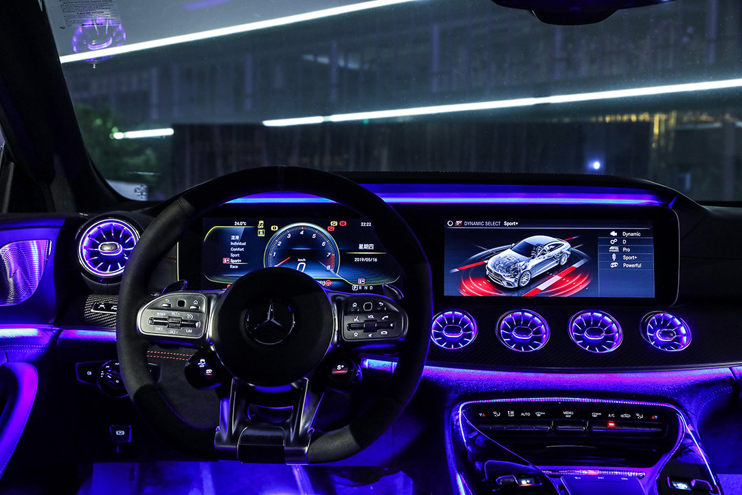 64色氛围灯已然成为奔驰新世代车型的标配,AMG GT四门跑车自然不会落下,当灯光亮起,我们仿佛感受到到,置身于丽思卡尔顿套房的大扇落地窗前,坐拥着维港夜色的绚烂般美妙。