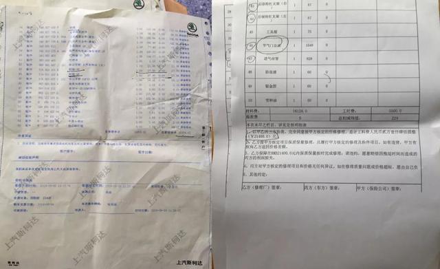 当再次发现车子制冷剂软管没有更换时,再次向4S店要求更换,并且更换到上面的进气歧管。结果发现4S店给出的进气歧管疑似非原装件,而刘先生便起了疑心,要求4S店出具维修工单,并且从平安保险那里拿到定损单,两个单子一对比才发现,维修工单上的维修项目有55项,而定损单上只有50项,两者的维修金额竟然都一样,都写着2.1万元。