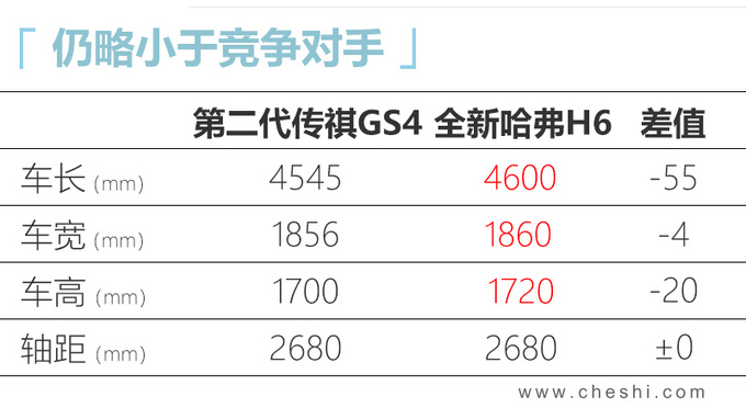 第二代传祺GS4的主要竞争对手仍然是哈弗H6 (配置|询价)、吉利博越 (配置|询价)、长安CS75、荣威RX5、比亚迪宋、奇瑞瑞虎7等车型。尺寸方面,经过加大后的第二代传祺GS4仍然比全新哈弗H6略小,不过这种细微的差距很难在实际乘坐过程中体验出来。动力方面,新车将沿用现款1.5T高功率发动机,满足国VI排放标准。(部分图片源于网络)