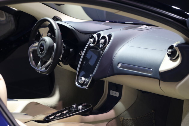 迈凯伦GT的内饰一眼就可看出来是迈凯伦的车,大部分布局和造型都承袭自之前的车款,但用料上更加奢华,车厢内大部分面积都被Nappa真皮以及Alcantara材质包裹,同时MSO(迈凯伦的客户定制部门)还可以为用户提供更高等级的皮革甚至羊绒材质的定制化内饰。