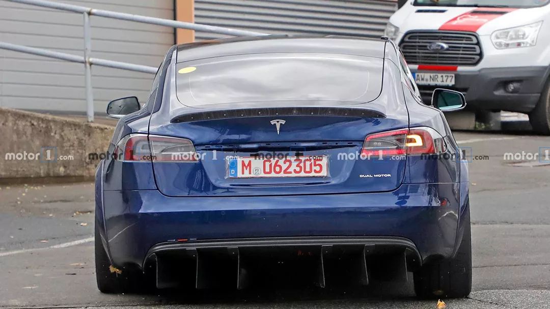 从媒体放出的谍照看,特供版特斯拉Model S与现款最大的不同是前轮后方的挡泥板出风口和车尾保险杠下方巨大的后扩散器。这样的设计可能是为了更好地提升运动性能,同时也会有更好的空气动力学表现,只是不知道这些设计是否会在换代的车型上出现。