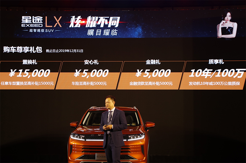 10月19日晚,EXEED星途LX (配置|询价)北区正式上市。新车推出1.6T一种动力版本共计4款车型,售价区间为12.59万-15.09万元。另外,截至2019年12月31日,新购车用户可享任意车型置换补贴最高1.5万元、车险补贴最高5000元、金融贷款补贴最高5000元以及发动机10年或100万公里的延保等购车政策。首批1000位车主还可享受终身免流量、百度视屏智能音箱。