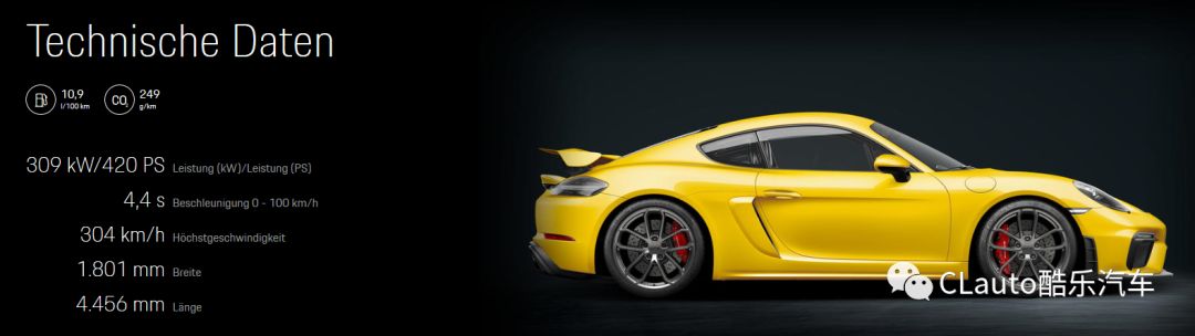 目前访问了德国的保时捷网站,但是暂时还未得到Porsche 718 Cayman GT4 Sports Cup Edition特别版的价格,正常的GT4版本的起售价格在96206欧元。