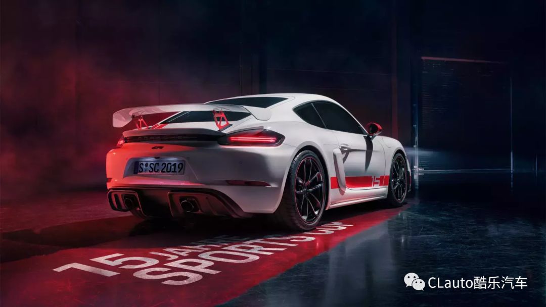 尾翼是与普通版本的GT4所以类似,涂装上加上了Porsche的字样和Guards Red的支撑臂。