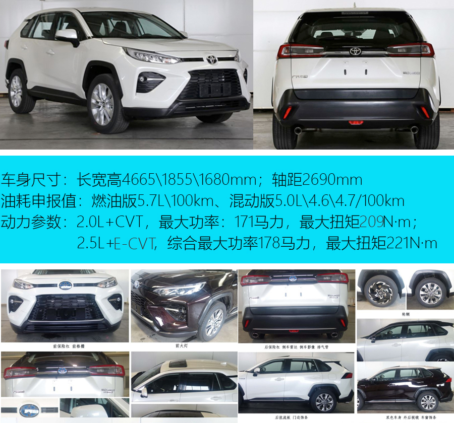 动力方面,广汽丰田威兰达将搭载2.0L和2.5L混动两种动力,其中2.0L发动机最大功率126kW,匹配CVT变速箱。混动版的动力系统由2.5L自然吸气发动机、双电机、行星齿轮式E-CVT变速箱等部件组成,2.5L发动机最大功率131kW,电机功率88kW。此外,两种动力车型也均将提供两驱和四驱版本。
