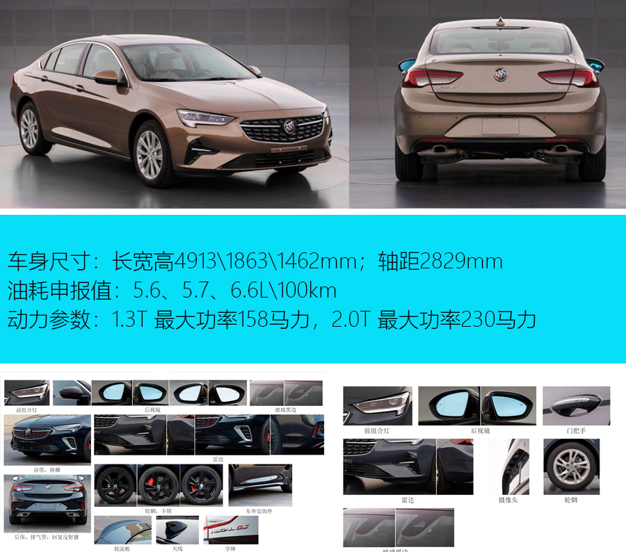 近日,新款别克君威现身工信部325批新车公示目录,从申报信息来看,新车在造型以及动力方面有所调整。据悉,新款君威有望于今年年底上市销售。造型上,新款别克君威前格栅换成了点阵式的设计,看上去更加精致动感。车尾部分,新款君威采用了双边共两出排气布局。新款君威的长宽高分别为4913/1863/1462mm,轴距为2829mm。根据不同配置,新车将配备了并线辅助、倒车影像、前后驻车雷达和无钥匙进入等配置。同时新车将提供205/65 R16、225/55 R17和245/45 R18三种规格轮胎。