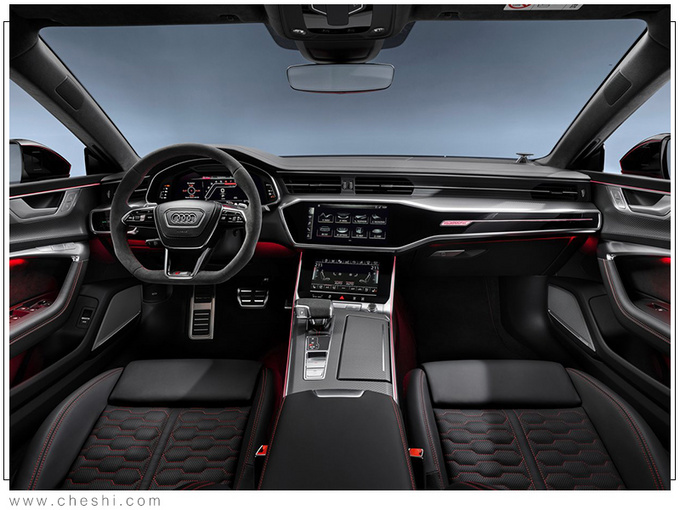 外观方面,奥迪新款RS 7 Sportback延续家族式设计语言,前脸采用六边形进气格栅,并未调整至家族最新的八边形,预计换代车型将应用。尾部装配贯穿式灯组,排气为双边共四出式布局,并由家族经典的椭圆形尾喉装饰。动力方面,新车将搭载4.0T V8双涡轮增压发动机,最大功率为441kW,并配备48V轻混系统。此外,新车带有闭缸技术,在低工况时可由八缸切换至四缸工作模式,48V轻混系统支持最长40秒的熄火滑行。