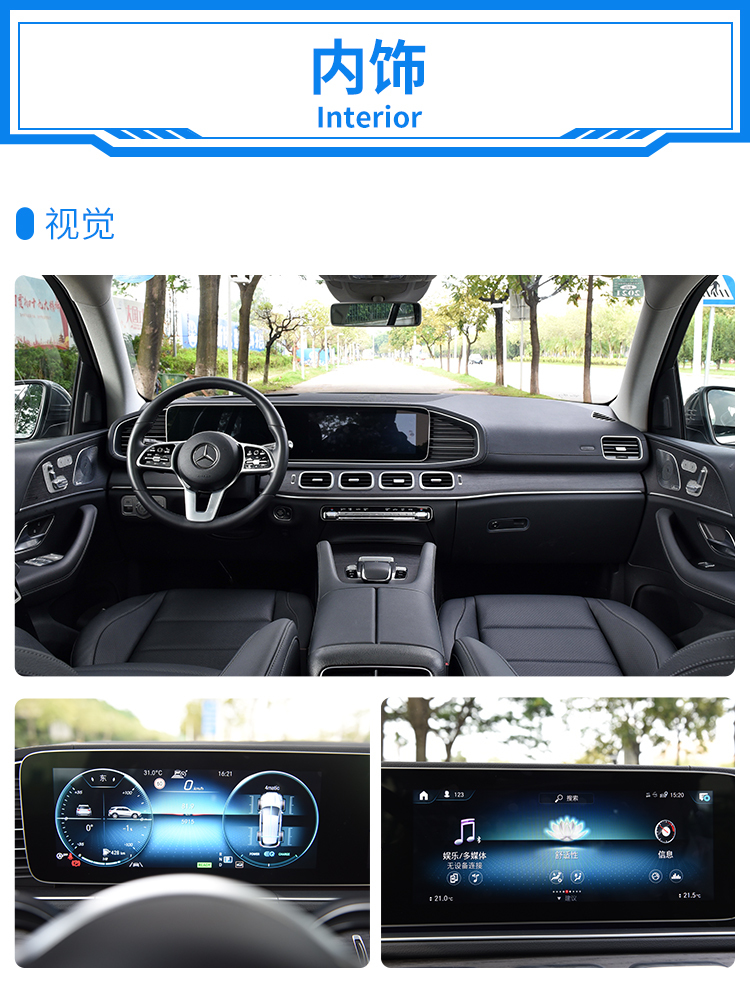GLE车内的配置自然是对得起自己的级别和身价,标配双12.3英寸显示屏、奔驰的MBUX人机交互系统、前后电动座椅、64色氛围灯、电动后备厢等,如果要进一步彰显自己的品味,可以选装柏林之声音响。