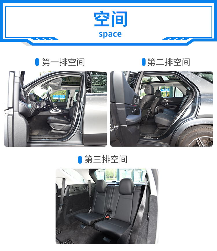 虽然奔驰GLE的轴距进行了加长,但是空间表现算不上惊艳,第二排的乘坐空间一般的5座中型SUV差不多,第三排的乘坐空间最好还是坐小孩子。