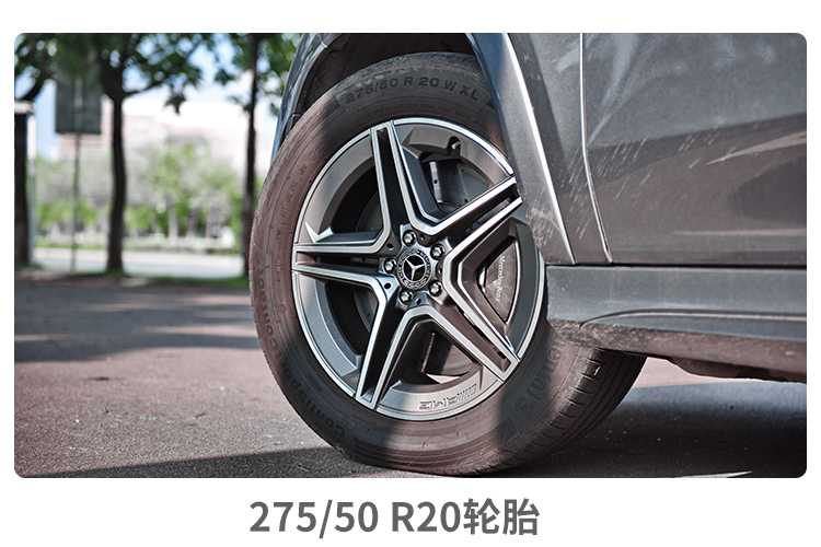 奔驰GLE采用了扁平比50的轮胎,如此厚的轮胎不只提升了舒适性,还让轮胎在应付越野路况时不至于太容易被扎破,保障了越野性能。当然比起同级竞争对手普遍40的扁平比,奔驰GLE的轮胎显得性能意味稍少。