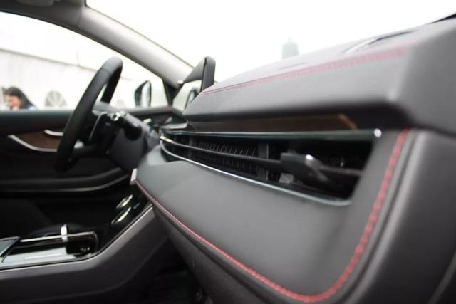 仪表板上细致的红色缝线让中控台层次分明,红黑搭配更显运动,贯穿式的空调出风口不仅看着新颖,使用起来更为又便捷。