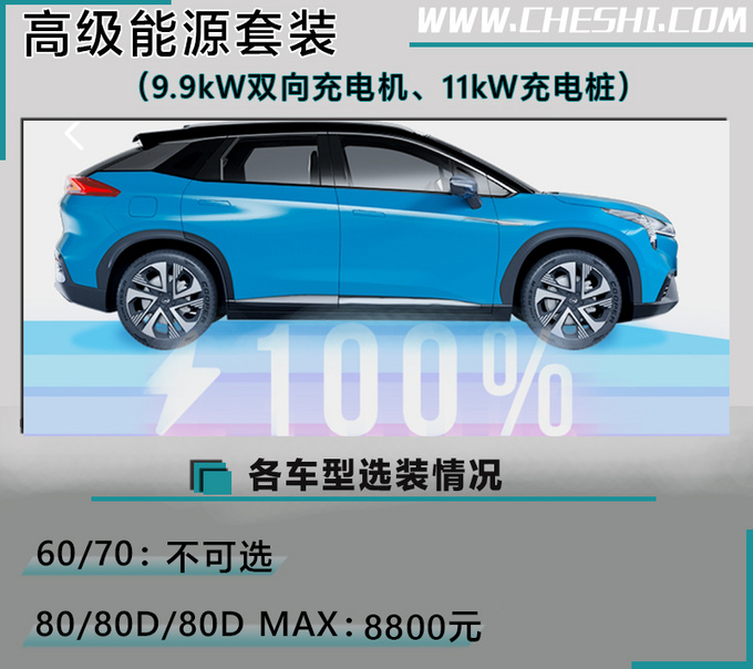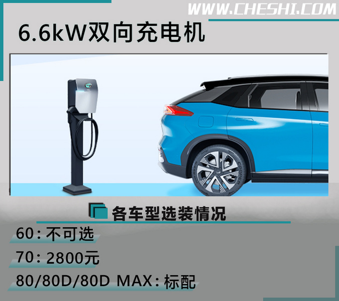 同时在充电方面,Aion LX 80、80D 、80D MAX三个版本标配6.6kW双向充电机,Aion LX 70可以选择双向充电机。