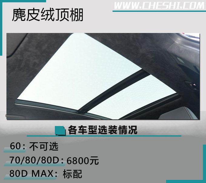 内饰方面以往只能在顶级豪车上才能见到的麂皮顶棚也可以进行选装,和外观套装的情况大致相同,顶配车型为标配,其余车型(除Aion LX 60外)需花费6800元选装,个人认为该选装配置对于氛围感的营造还是非常重要的,值得大家选装。