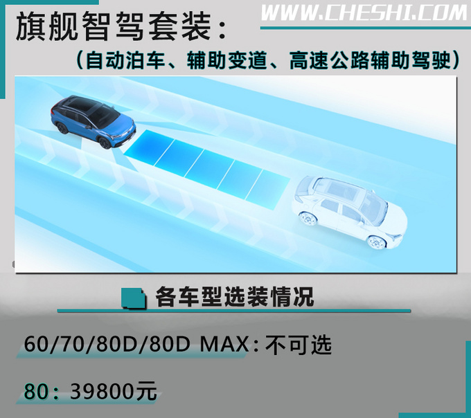 在自动驾驶方面,厂家提供了L2级别的领尊智驾套装(包括自动泊车、辅助变道)以及达到L3驾驶级别的旗舰智驾套装(包括自动泊车、辅助变道、高速公路驾驶辅助),其中顶配车型标配了领尊智驾套装,除最低配外的其余车型需要花费2.58万元选装,该功能对于新手司机来说还是非常实用的配置,L3级别的旗舰智驾套装仅中配的Aion LX 80车型能够选装,价格为3.98万元,但是选装该配置的最早交付时间为2020年3月,个人认为“噱头大于实际作用”,因此领尊智驾套装最为值得推荐选装。