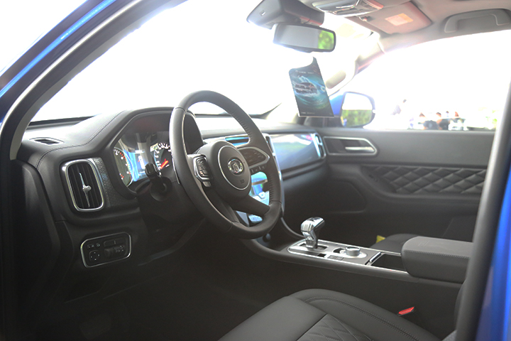 配置方面,长城炮乘用皮卡全系标配无钥匙进入+一键启动,多功能真皮方向盘配备换挡拨片、真皮座椅、前排座椅加热、自动空调、空调后出风口、可开启天窗、专属香氛等乘用化配置一应俱全。为迎合消费者需求,该车配备新一代智能网联系统,具有车机手机互联、智能语音控制、远程控制、智能动态信息服务等功能。鉴于此次拍摄车辆为运动版车型,新车还搭载360环视、倒车影像等安全配置。