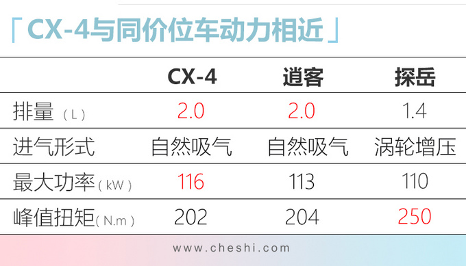 动力上,全新CX-4搭载升级后的2.0L或2.5L自然吸气发动机,优化了喷油雾化,提高环保性能。CX-4所处的轿跑SUV较为小众,主要面对的是年轻用户,但他们的购车需求已经不是单一的个性化,而要覆盖多个用车场景。全新CX-4在延续现款特点的同时,增添了更多豪华配置,升级程度与此前的全新阿特兹相近。并且该车新增了两种动力的入门版本,便于年轻人购车。