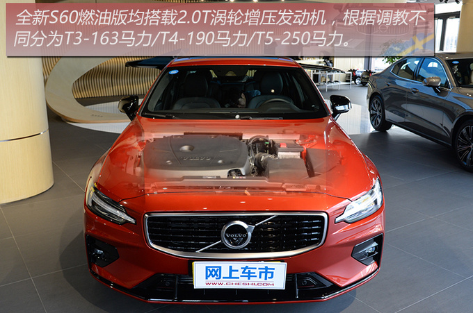 全新一代S60燃油版均搭载2.0T涡轮增压发动机,根据调教不同分为 T3-163马力/T4-190马力/T5-250马力,与之匹配的是8速自动变速器,值得一提的是未来还会推出双擎的T8版本,最大功率为390马力。