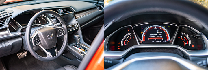 三幅式多功能方向盘造型依然动感,恰到好处的尺寸、凹位设计以及皮质材料包裹质感出色。液晶仪表盘底色也用上了代表运动的红色,单转速表盘的设定常见于性能车型上,本田在讨喜驾驶员上还是有着自己的一套办法。