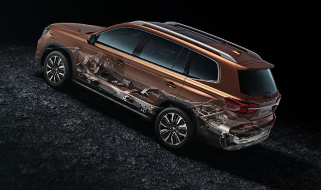 从侧面看汽车车型庞大显得十分威猛,悬浮式车顶搭配熏黑式大轮毂,浓郁硬汉式风格尽显凶悍。新车做工非常扎实厚道,三围尺寸颇为修长,4923*1930*1840毫米,搭配2850毫米的轴距,将内部空间打造得十分宽敞,而且还在降噪防噪方面更是细心处理,这使其舒适性有明显提升。