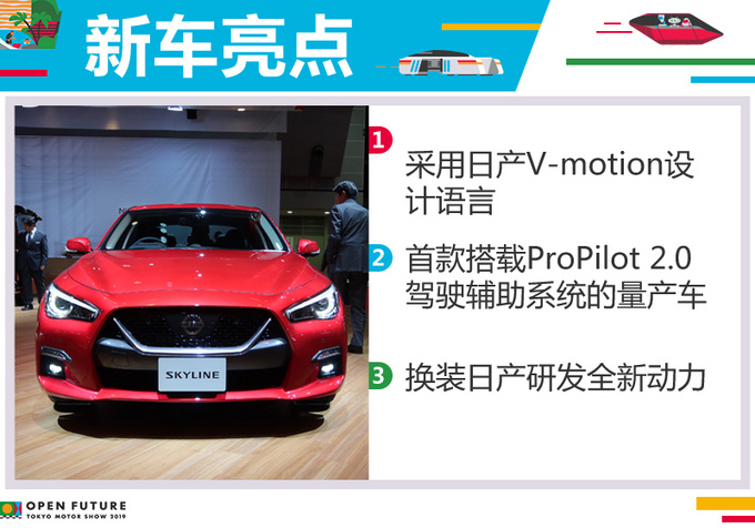 在2019东京车展上,日产汽车发布了Skyline(国内英菲尼迪Q50)中期改款车型。新车在设计方面相比较现款车型进行了比较大的改动。新车采用日产V-motion设计语言,LOGO部分也由英菲尼迪正式换成了日产LOGO。比较值得一提的是新车搭载了日产研发的全新动力总成,提供3.5L V6混动系统和3.0T V6双涡轮增压发动机供选。