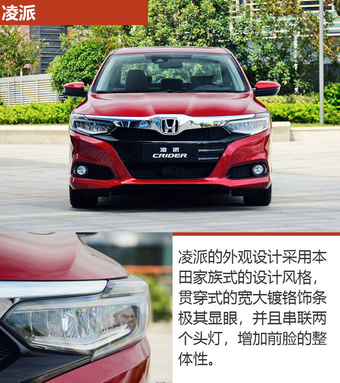 凌派 (配置|询价)的外观设计采用本田家族式的风格,整体造型偏向运动风格,并且内饰的设计,非常实用,功能分区非常合理,并且车内空间以及座椅舒适度都是它的长处,可以给乘客带来良好的乘坐感受。