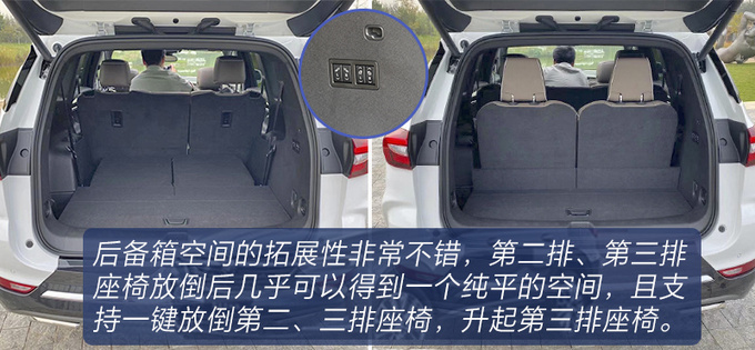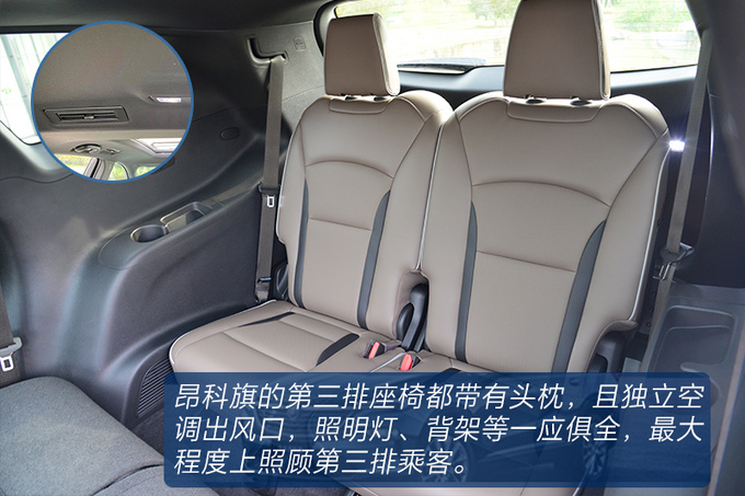 作为一款7座车型,昂科旗的空间表现让人满意,第二排乘坐舒适度不错,第三排不算鸡肋,整车基础储物空间多且内部容积大,后备箱空间拓展性强。