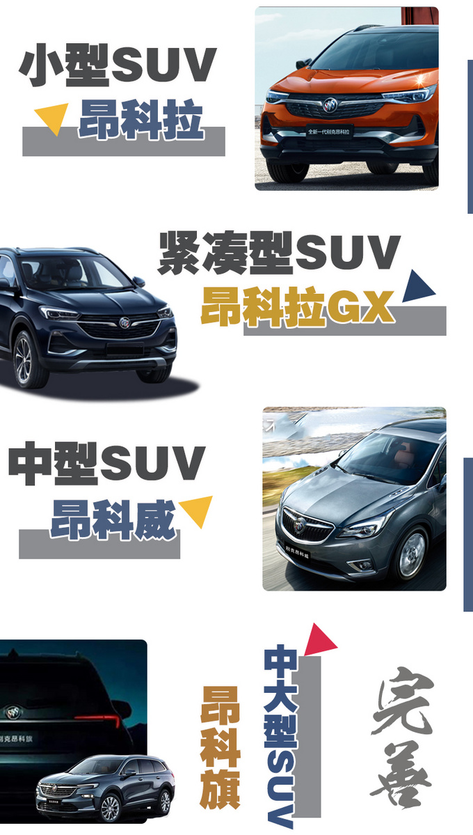 今年对于通用别克SUV整体产品布局可以说是非常关键的一年,在小型SUV市场推出了全新换代的昂科拉,紧凑型SUV市场又有着全新昂科拉GX,中型SUV市场有着昂科威,而昂科旗的到来正式补齐了在中大型SUV市场的空白和短板,家族整体的SUV产品矩阵已趋向完善,每一个级别都有产品可以提供给消费者选择。