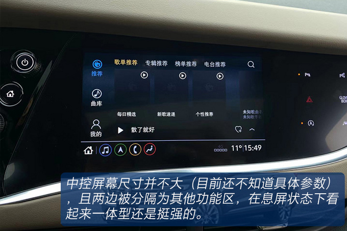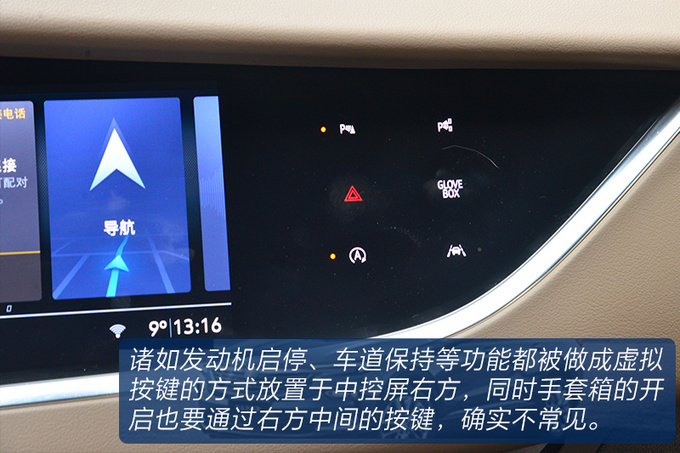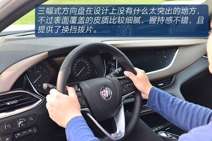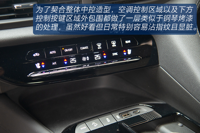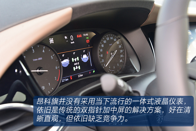 昂科旗在内饰氛围方面还是想尽量摆脱这个级别车型一贯的油腻感,中控台的一体感非常强,采用了大量的线条穿插装饰,偏向于驾驶员一侧的设计更有环抱感,大面积的皮革包裹强调豪华属性,且双色拼接的内饰更加凸显年轻化。