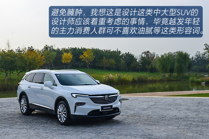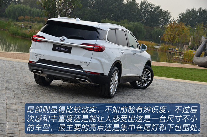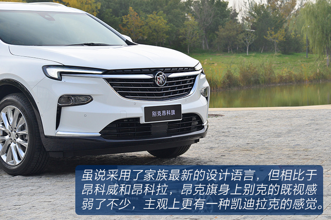 其实要想把一款中大型SUV设计得让不同年龄阶段的消费者都能够接受,其实是非常有挑战的,从笔者主观上来看,昂科旗更像是健身成功后昂科雷,气势不减但能够符合主流审美,整体尺寸和XT6相近,比昂科雷略小,分体式灯组的设计不显赘余,算得上干净利落的车身线条,敦实且层次感丰富的尾部让这台车看起来规矩又不失气场,就算不认识,你也能感受得到这台车并不便宜。