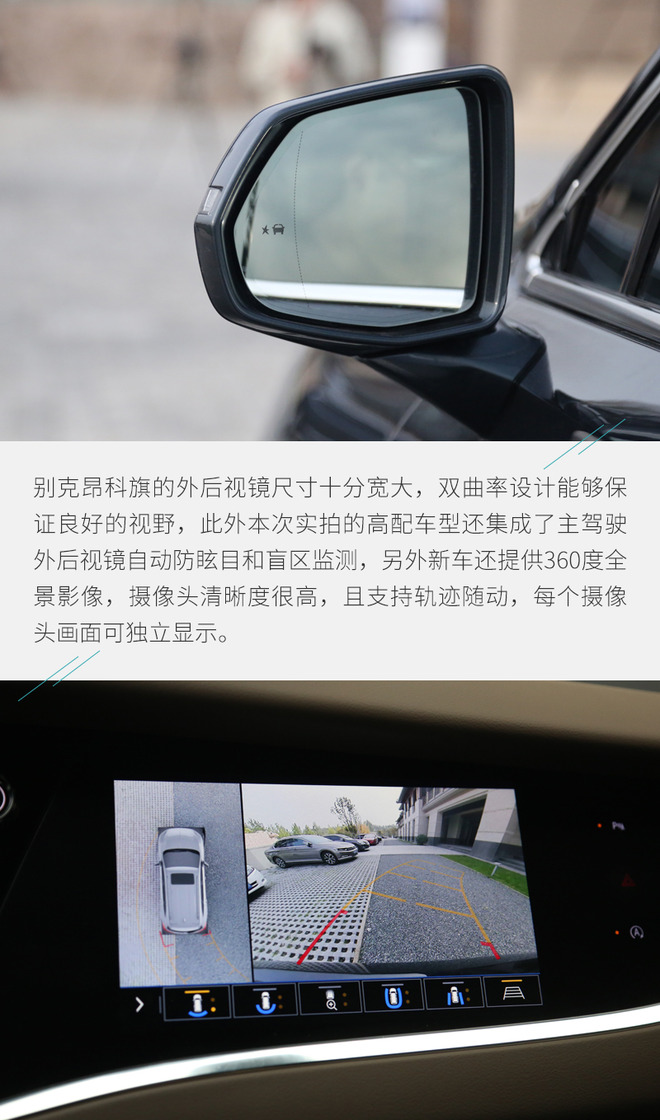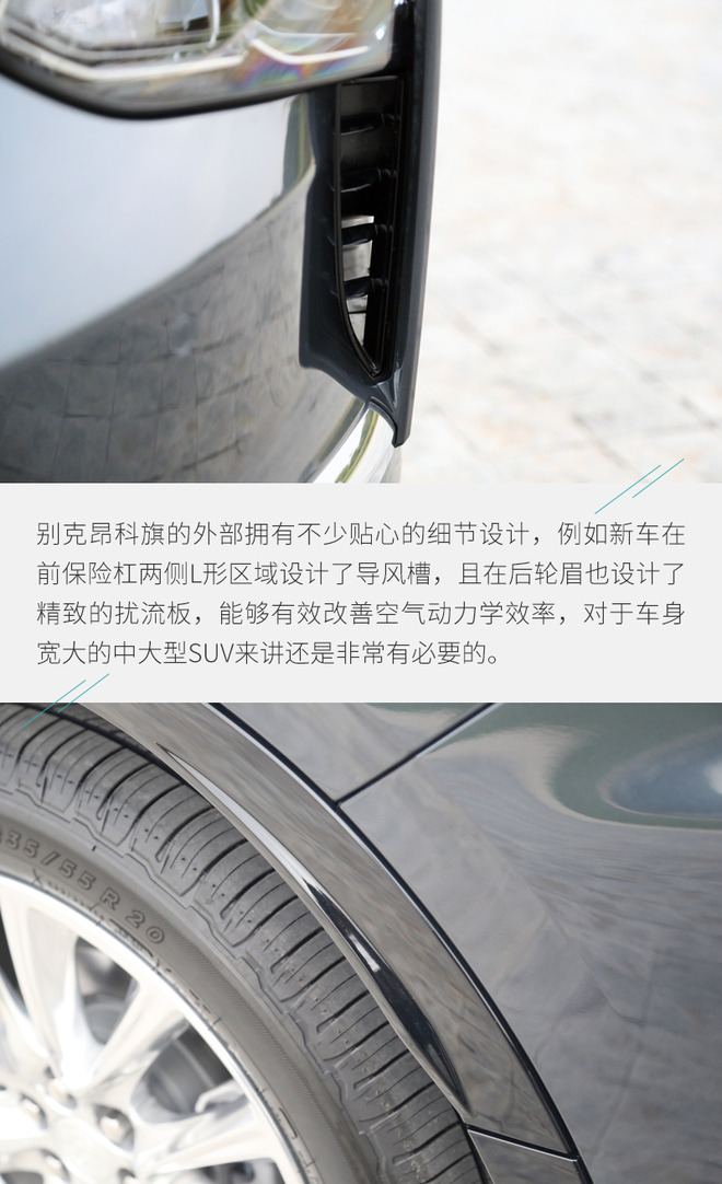 作为一款中大型SUV,别克昂科旗的外观设计符合这一级别应有的气场,庞大的车身搭配流畅的线条带来十分动感的视觉感受,另外新车在大量细节处还有针对提升空气动力学效能的设计,可以看出设计师的用心。此外,别克昂科旗的外部配置水平表现也足够令人满意,除了前后泊车雷达、360度全景影像、LED头灯等常见配置以外,还有支持自动防眩目的外后视镜等贴心功能。