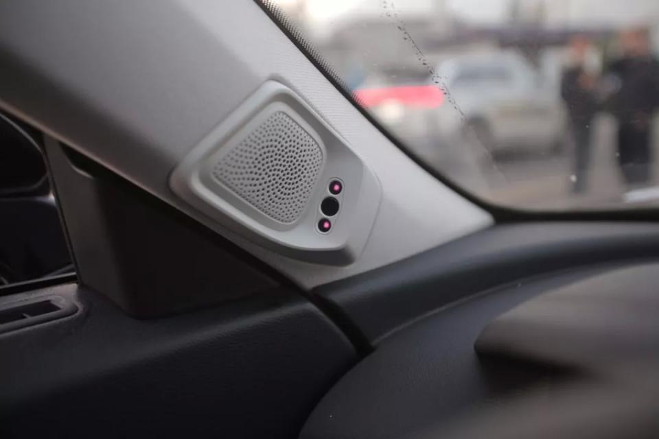 T99人脸识别系统摄像头设计在A柱上,同样吉利星越、WEY也是类似设计。相比之下T99系统有点敏感。例如你开车稍为低头,它就会提醒你:“请专心开车哦。”这种提醒会一直伴随着你。