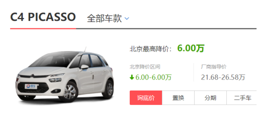 MPV最大的特点就是空间大,乘坐舒适,所以成为了许多家庭选车的首选,我们比较熟悉的有奥德赛 (配置|询价)、艾力绅 (配置|询价)、还有偏商用的别克GL8 (配置|询价)等,而今天我们要说的这款MPV偏小众化一些,可能知名度不如奥德赛、GL8这样的有名气,但是在产品表现上却有着可圈可点的额实力。这款车就是雪铁龙旗下的C4 PICASSO。 目前,这款车在国内采用进口的方式在市场销售,指导价为:21.68万-26.58万元,最近了解到这款车现在有不小的优惠力度,很多车型甚至要优惠6万元,使得这款车还是具有很大的竞争优势的。