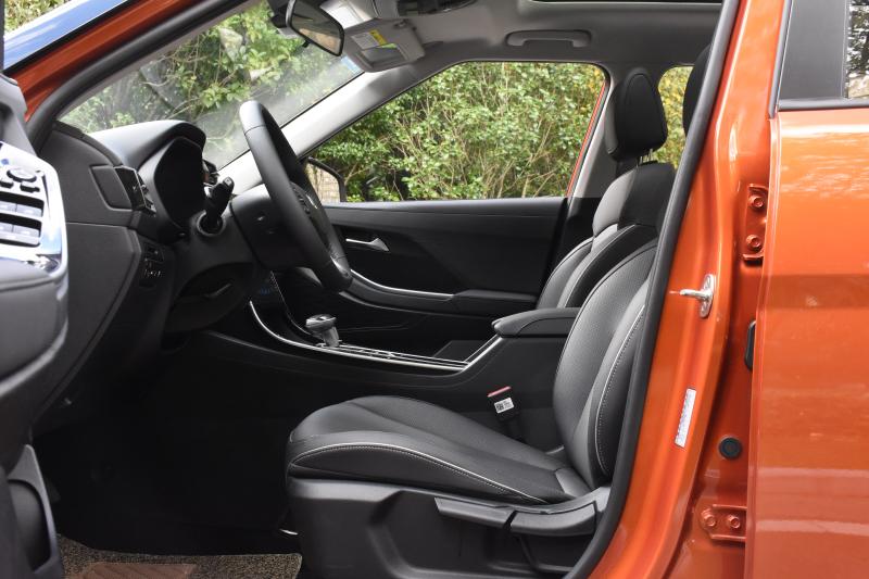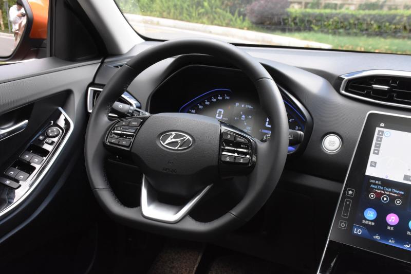 我们试驾的ix25是顶配车辆,所以前排座椅采用的是真皮材质。座椅的支撑性很到位,两侧包裹也很充足。不足的是座椅本身不是很柔软,填充的比较薄。另外遗憾的是,新一代ix25全系都没有配备电动调节的座椅。