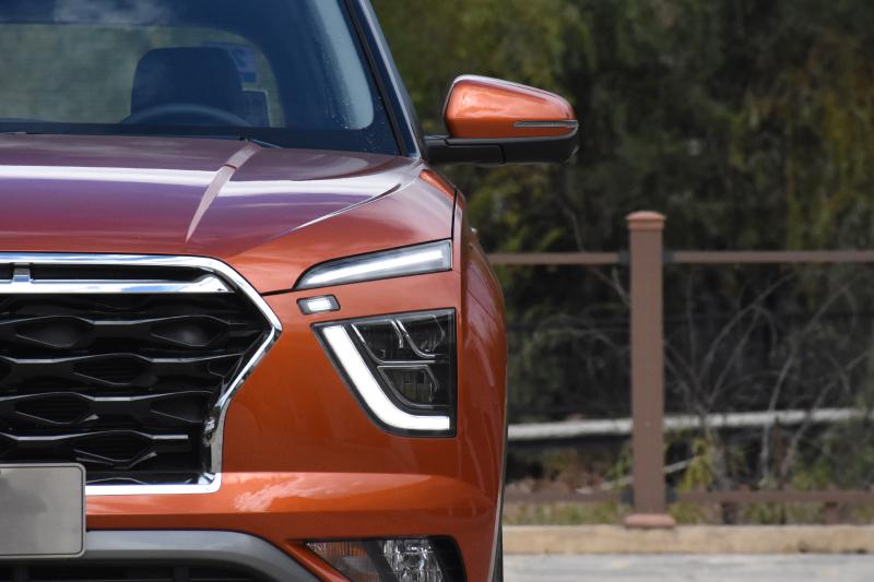 全新的Sensuous Sportiness设计理念在新一代ix25上完全没有了当年的清爽,而是给人大气、充满力量的感觉。多边形前格栅散发着青春的活力,配合上两旁造型怪异的分体式大灯,视觉效果绝对夸张,美观与否先不说,辨识度起码是成功的。