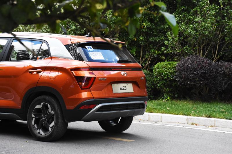 车尾还采用了悬浮式车顶的设计。与其它车型不同的是,ix25运用多种颜色拼接的设计达到悬浮的效果,看起来更加有层次感,也更别致一些。