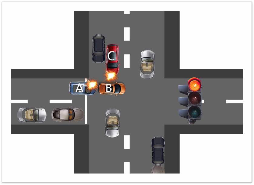 从测试规则来看,B车被A车以50km/h时速追尾后,又被时速50km/h的C车侧面撞击。图二中左侧红色EX5为追尾碰撞测试车辆,中央白色EU5 (配置|询价)为用于侧碰测试车辆,右侧蓝色EX3为先被追尾碰撞、后被侧向碰撞目标车辆。