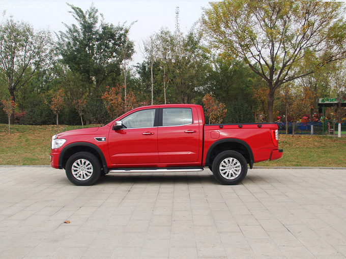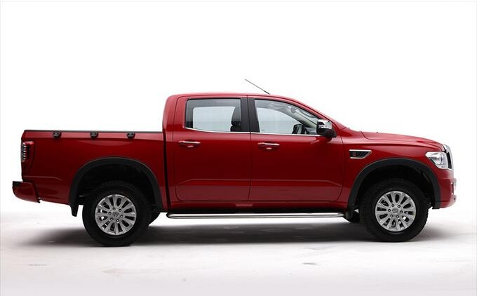 中兴领主皮卡的造型更加硬派,中网、轮拱等都采用了黑色涂装,并且保险杠和侧踏板都采用了铁质材料,非常适合非铺装道路。