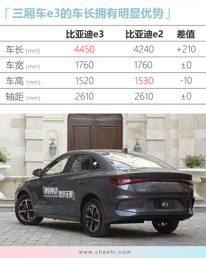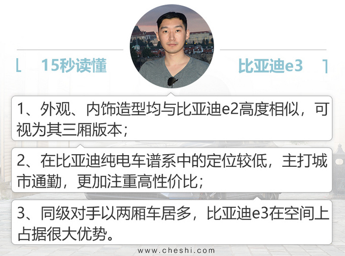 目前国内纯电动乘用车市场中主要有3大热销品类,分别是SUV、A级家轿和A00级小车,而像比亚迪e3这样轴距在2米6左右的三厢轿车屈指可数。该车上市后将利用这种错位竞争优势,瓜分北汽新能源EC5、欧拉iQ、奇瑞艾瑞泽e (配置|询价)等主流电车的市场份额。