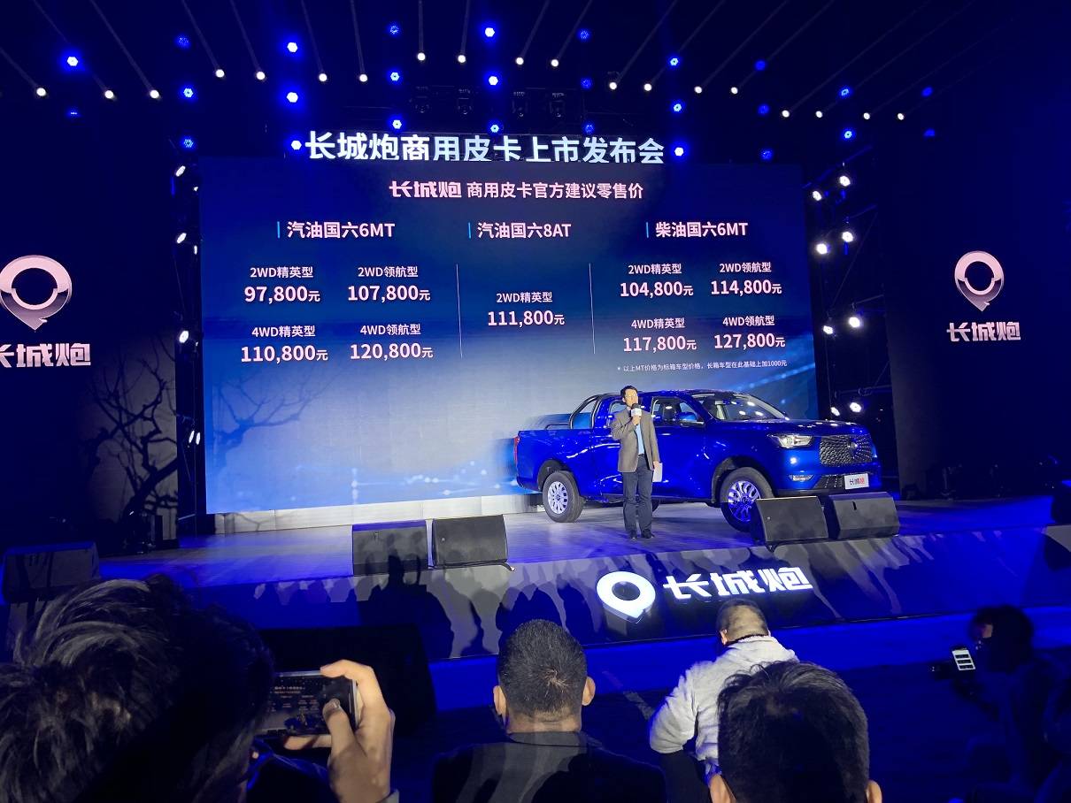 被大家关注依旧的长城炮 (配置|询价)商用皮卡终于在10月24日迎来了正式上市。将提供汽/柴油动力、6MT/8AT、标准货厢/长货箱等共17个版本供大家选择,售价9.78-12.78万元,长货厢版本车型在现有售价基础上增加1000元。