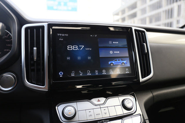 长城炮商用皮卡在内饰的设计和用料方面十分讲究,整体以黑色为主,显得更加稳重。如果单看内饰不看外观的话很难让人觉得这是一款皮卡车。对称式的中控设计搭配大面积软质材料,让一款身披工具属性的皮卡越来越像SUV车型靠拢。