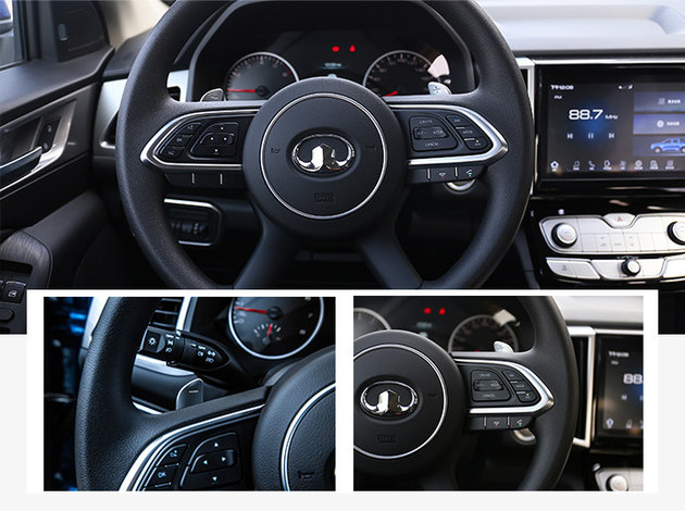 长城炮商用版车型使用了一个配有换挡拨片的四幅式多功能方向盘,虽然皮卡并不是主打运动的车型,但是有了换挡拨片,驾驶乐趣确实能增加不少。方向盘尺寸较大,对于女性驾驶者来说不太友好。