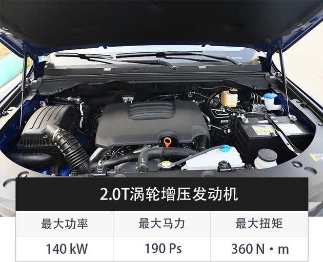 我们今天试驾的是汽油版两驱8AT车型。搭载一台代号为GW4C20B的2.0T发动机,最大功率190马力,峰值扭矩360牛·米,传动系统匹配来自采埃孚的8速手自一体变速箱。