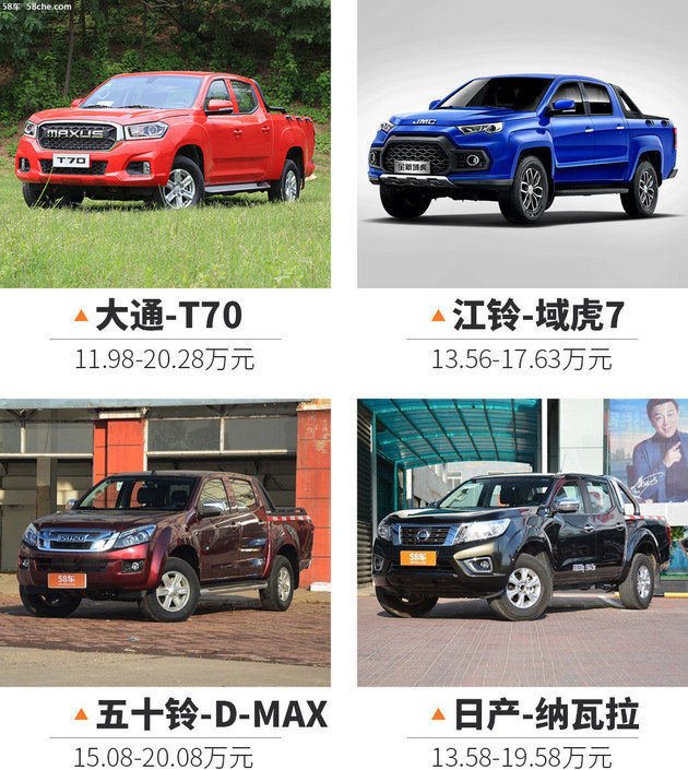 2、长城炮乘用皮卡的竞争对手众多,不仅有来自自主品牌的上汽大通T70和江铃域虎7 (配置|询价),还有来自合资品牌当中的日产纳瓦拉 (配置|询价)和五十铃D-MAX。