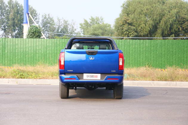 车尾造型方正较为普通,配有黑色防滚架颇为冷峻。商用版的尾灯不再是立体造型,尾灯罩更换为普通的红白色,货箱后挡板造型也更为平整一些,取消了装饰性线条。该车后保险还集成了上车踏板的功能。另外在货箱扳手处带有倒车影像,这样日常泊车会更为方便。